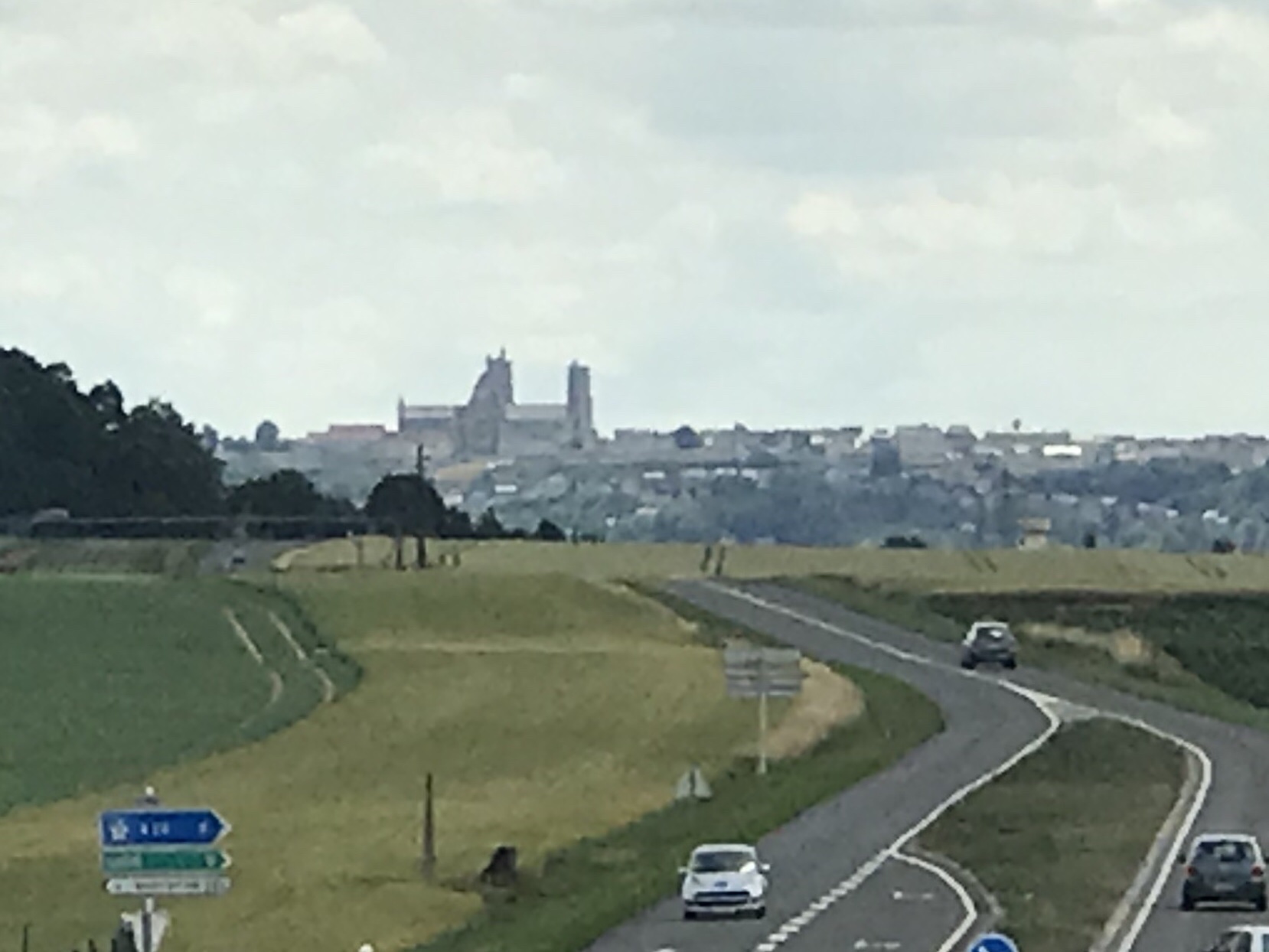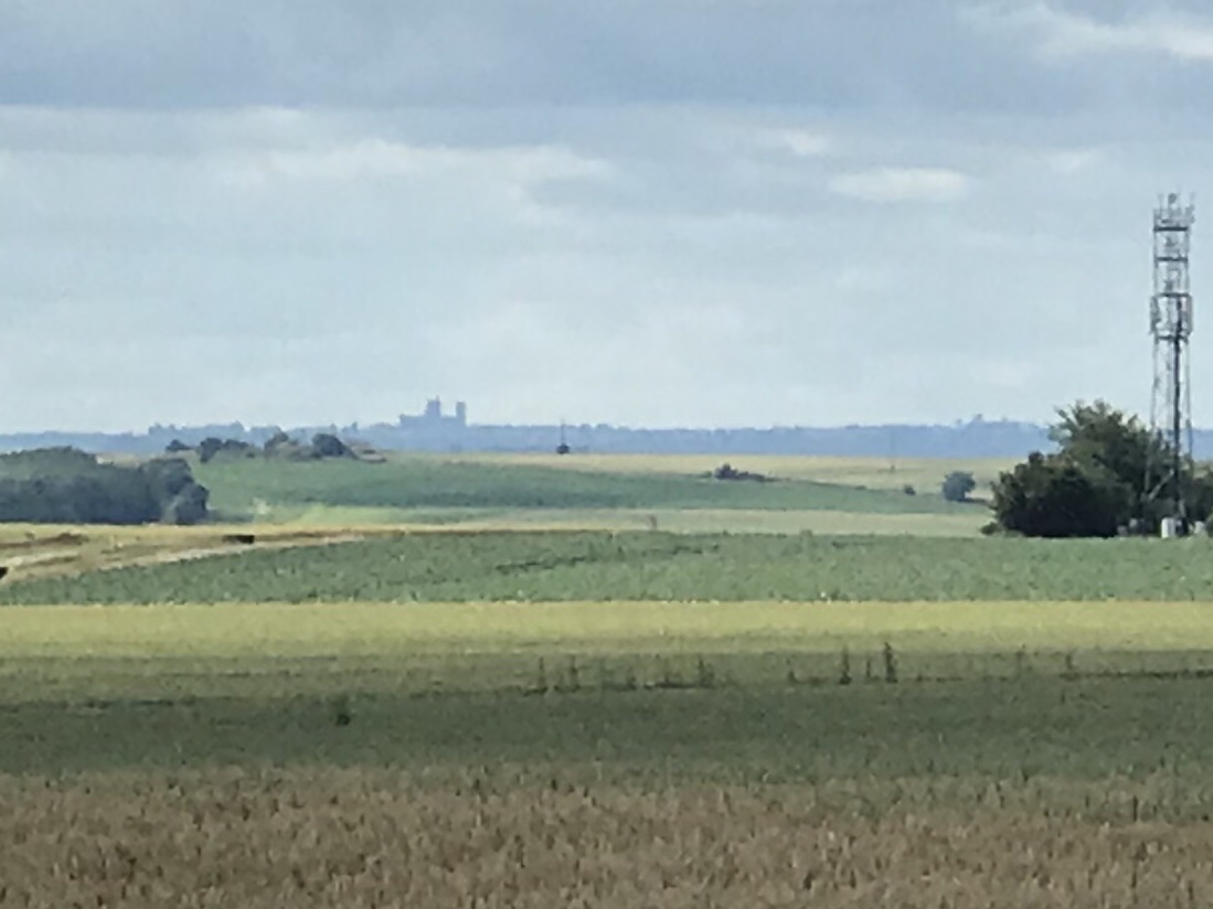Chemin valloné avec une vue sur la cathédrale de Laon à près de 30 km à vol d’oiseau :