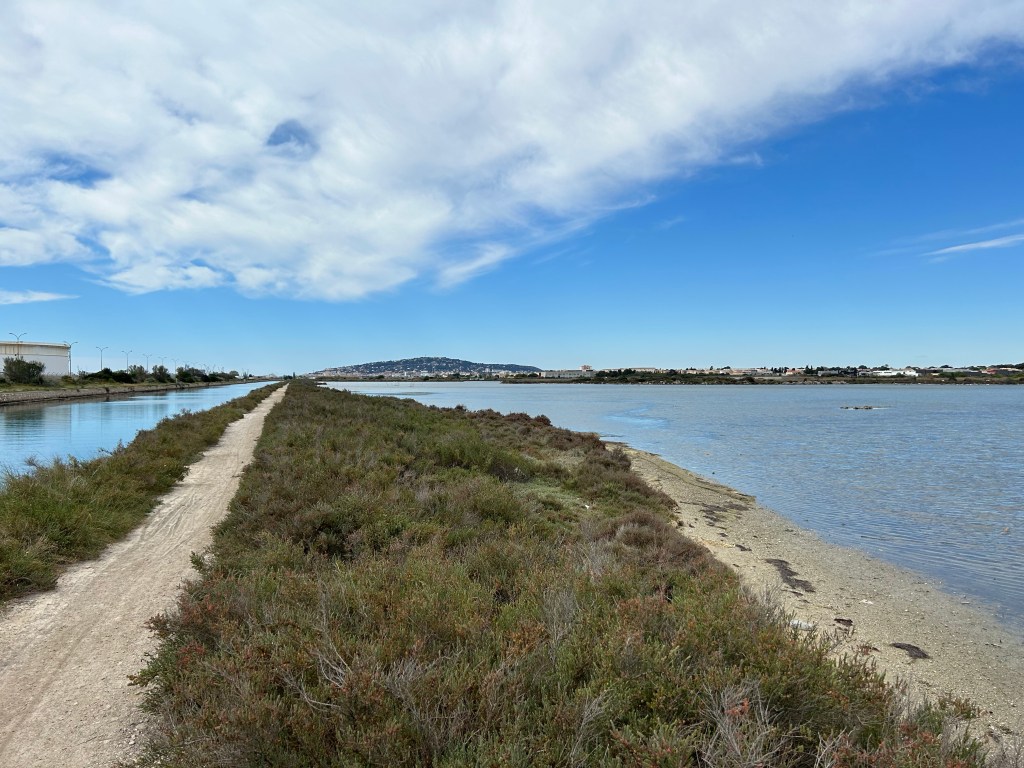 Ce n’est pas la première fois que je fais ce trajet mais aujourd’hui je réussis à éviter la nationale (malgré des indications très hasardeuses) et j’arrive à Sète en suivant des petits sentiers entre canaux et étangs.