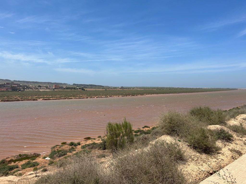 Après le repas je repars poussé par le vent et je longe l’oued Tensift :