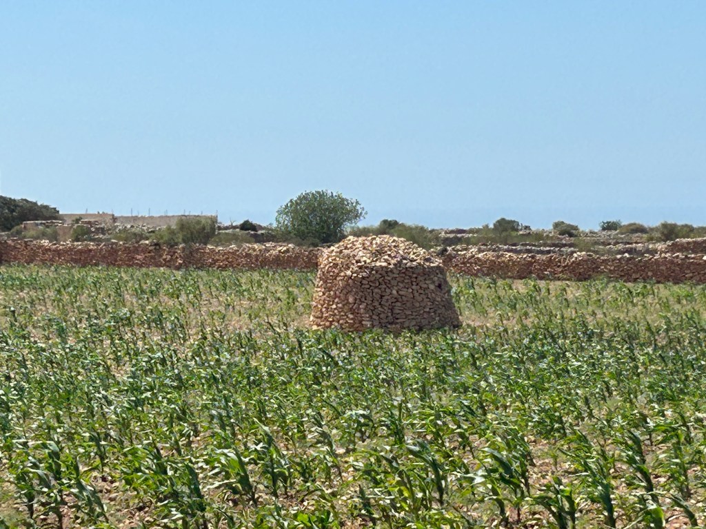 A près ça va un peu mieux, j’avance parmi des champs entourés de pierre jusque ce que je vois une borie en plein milieu d’un champ de maïs… habituellement ce type de construction sert d’abri aux bergers dans des endroits isolés ; ici c’est peut-être simplement un stock de pierres artistiquement rangé.