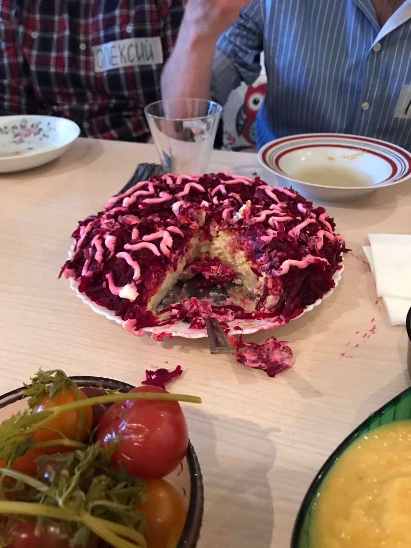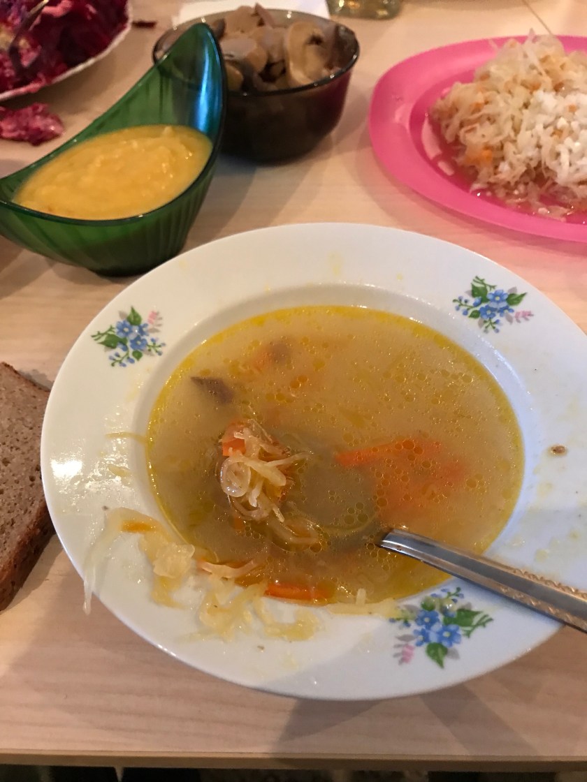 Il fait toujours froid quand j’arrive à la pause déjeuner mais le bortch est délicieux, de même que le goulasch.