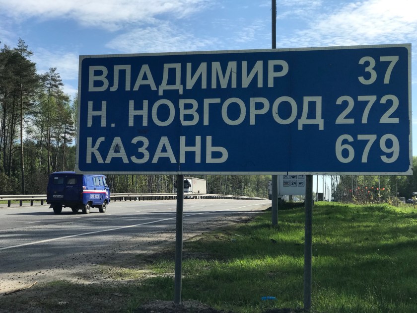 Or mon ami Gloogle m’avait bel et bien fait une trace traversant la Volga juste à la sortie de la ville. Comme Google se trompe rarement l’explication était une traversée en ferry. Mais qui dit ferry dit horaires… donc je prends mes renseignements auprès du jeune stagiaire de l’hôtel qui finit par m’annoncer que le service des ferries commencent le 29 Mai, information considérable quand on a prévu de faire ce trajet le 14.