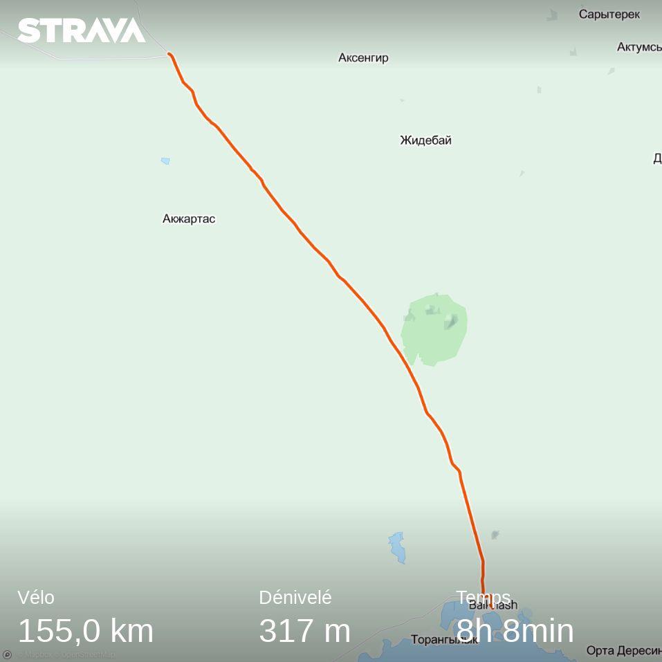 J’arrive à Saryshagan, 144 km au compteur