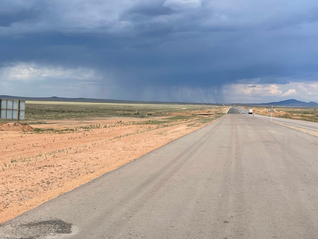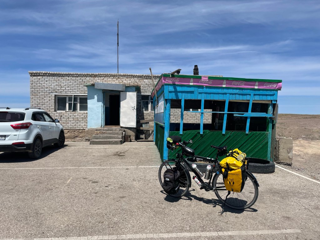 Je repars, malgré l’insistance de Fionar pour qu’on monte le vélo à l’arrière de son camion et qu’il me dépose à Balkhash. La tentation était bien présente mais quand même…