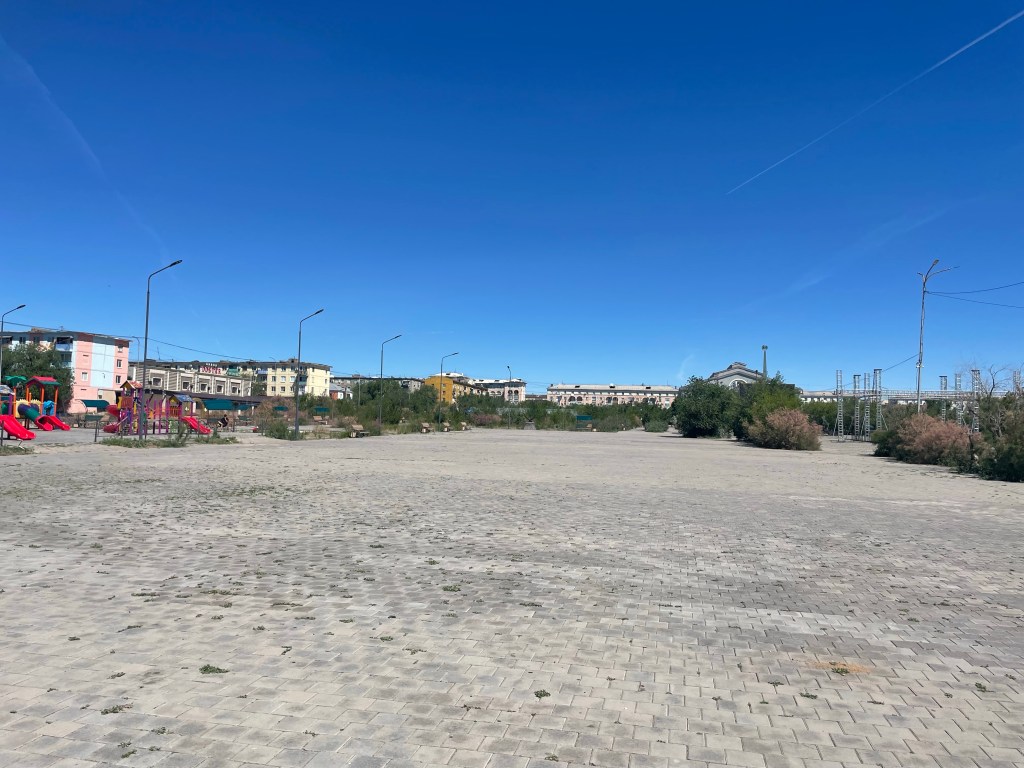 Une photo du chevalier Kazakh (dont je n’ai pas pu avoir le nom) à l’extrémité d’un parc pour enfants :