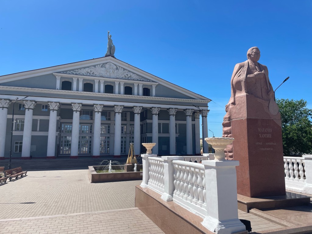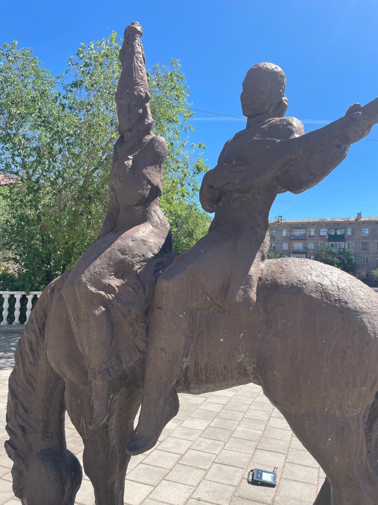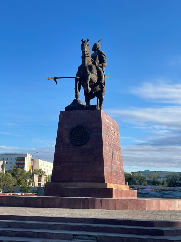 Je passe devant une statue de chevalier Kazakh, au look impressionnant :