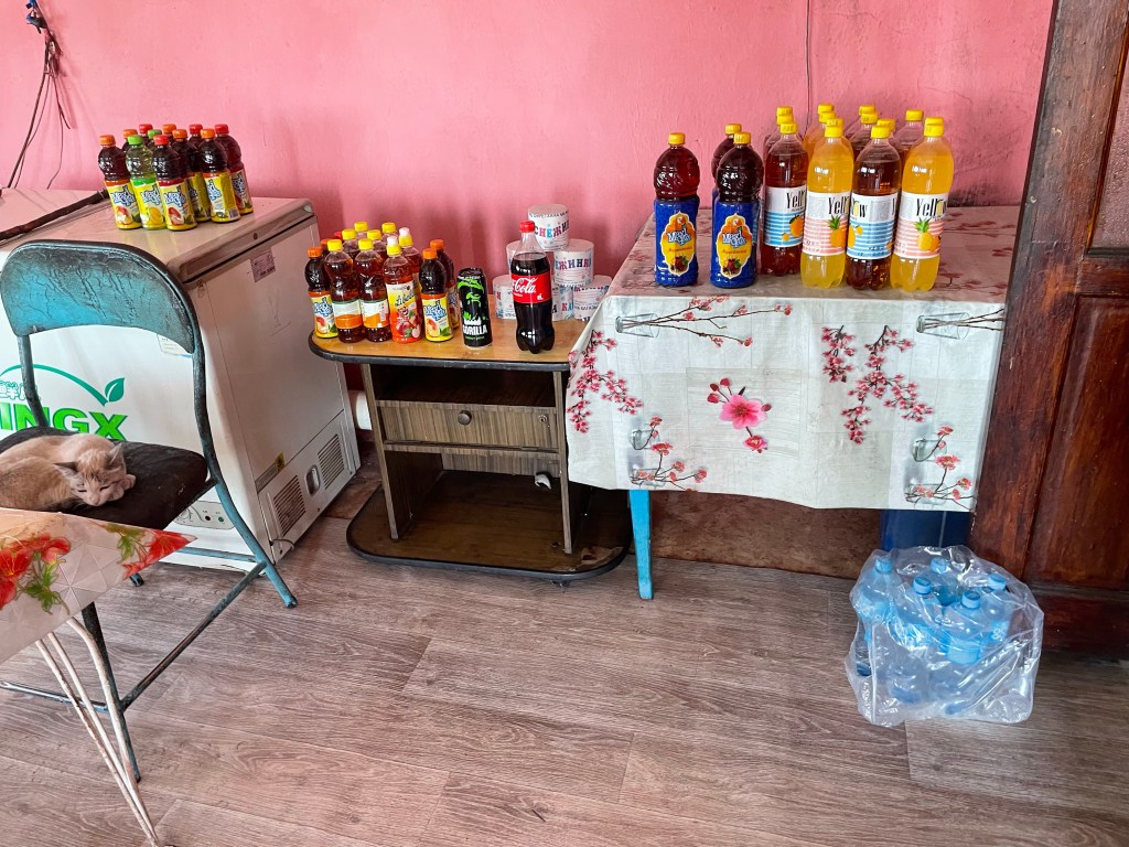 Au café, un petit thé et un biscuit. Un selfy avec la patronne qui me souhaite « Que Dieu vous bénisse, vivez longtemps jusqu’à 100 ans »