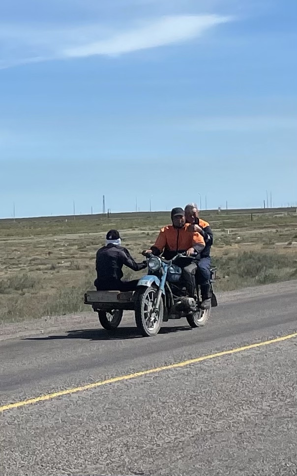 Notre repas est l’occasion de questions multiples sur les voitures, les retraites, la guerre en Ukraine, la famille…. Aizhan doit être épuisée de son double rôle de cuisinière-hôtesse et traductrice ! Bravo et merci à elle.