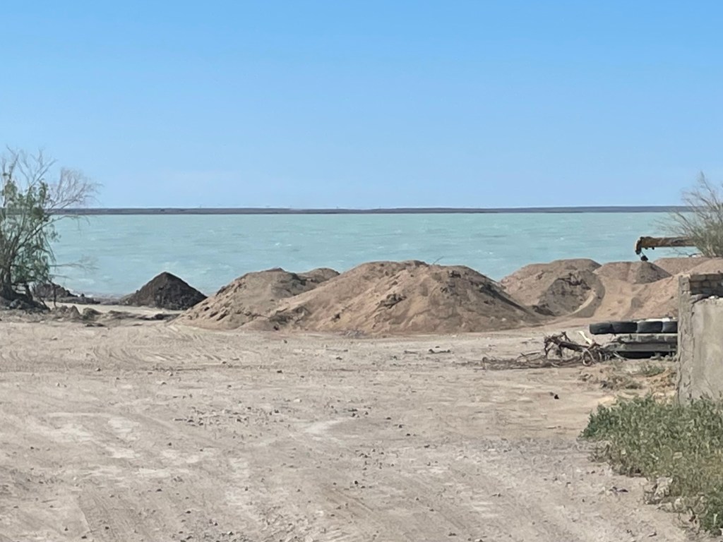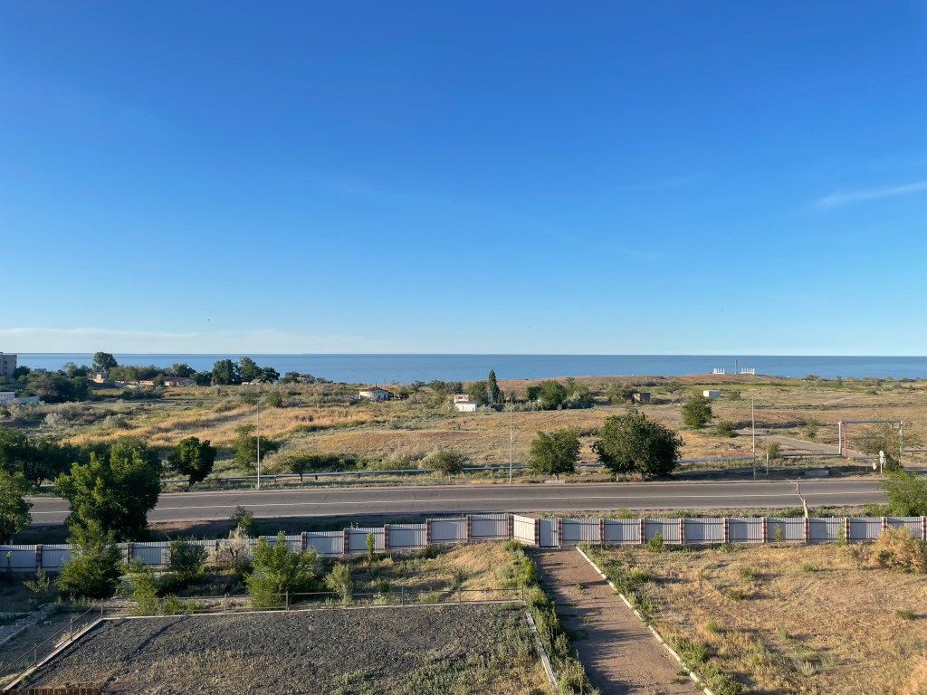 Sur ma gauche le lac Balkhash est un mince filet qui se confond avec la ligne d’horizon